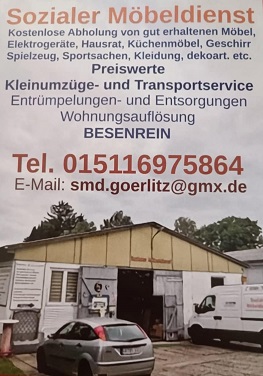 Sozialer Möbeldienst Beti&Stas ist ein Unternehmen in Görlitz, Heilige-Grab-Straße, das sich auf den Verkauf, Transport und Aufbereitung von Gebrauchtmöbeln spezialisiert hat. Wir legen Wert auf Nachhaltigkeit, Qualität und Kundenzufriedenheit.